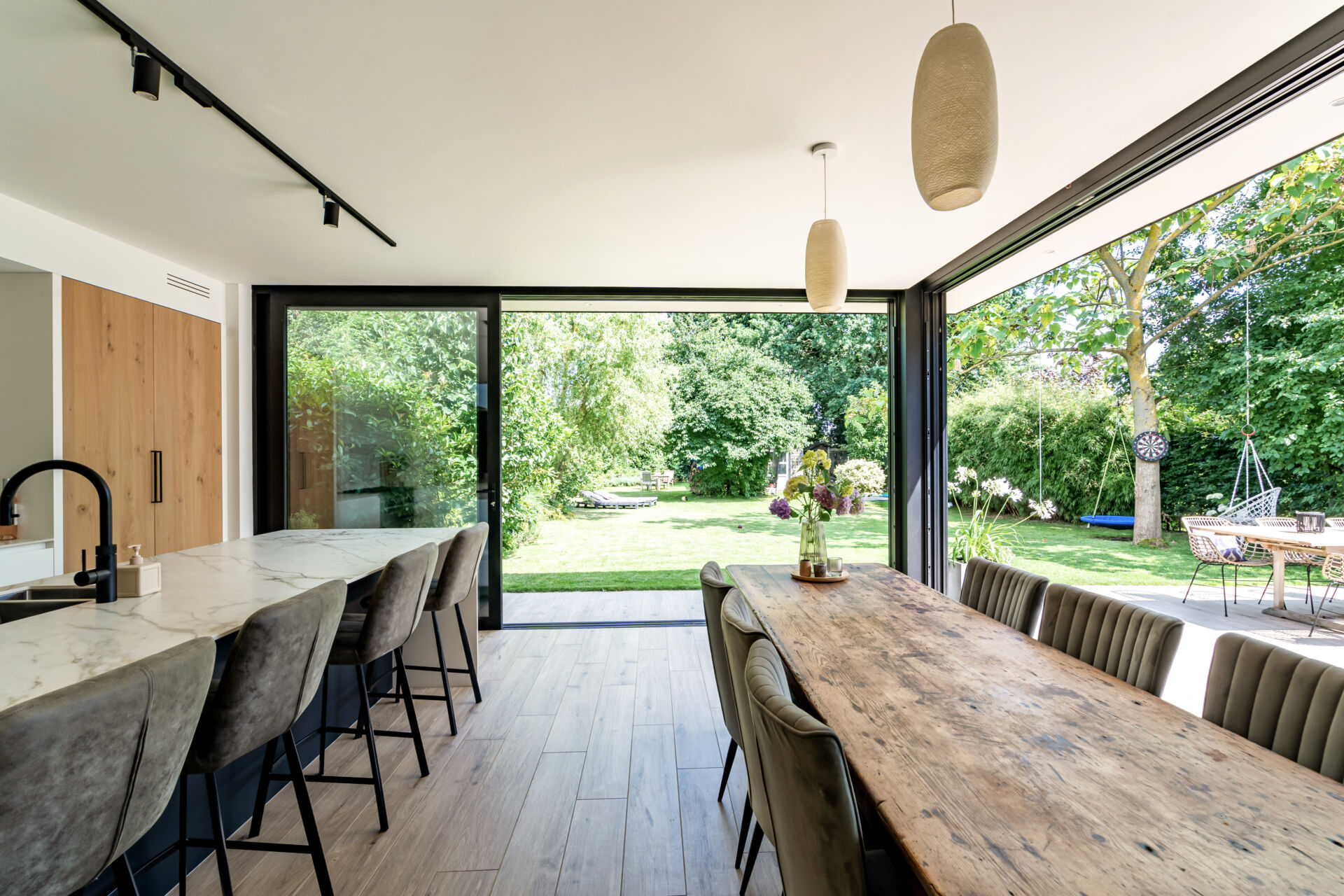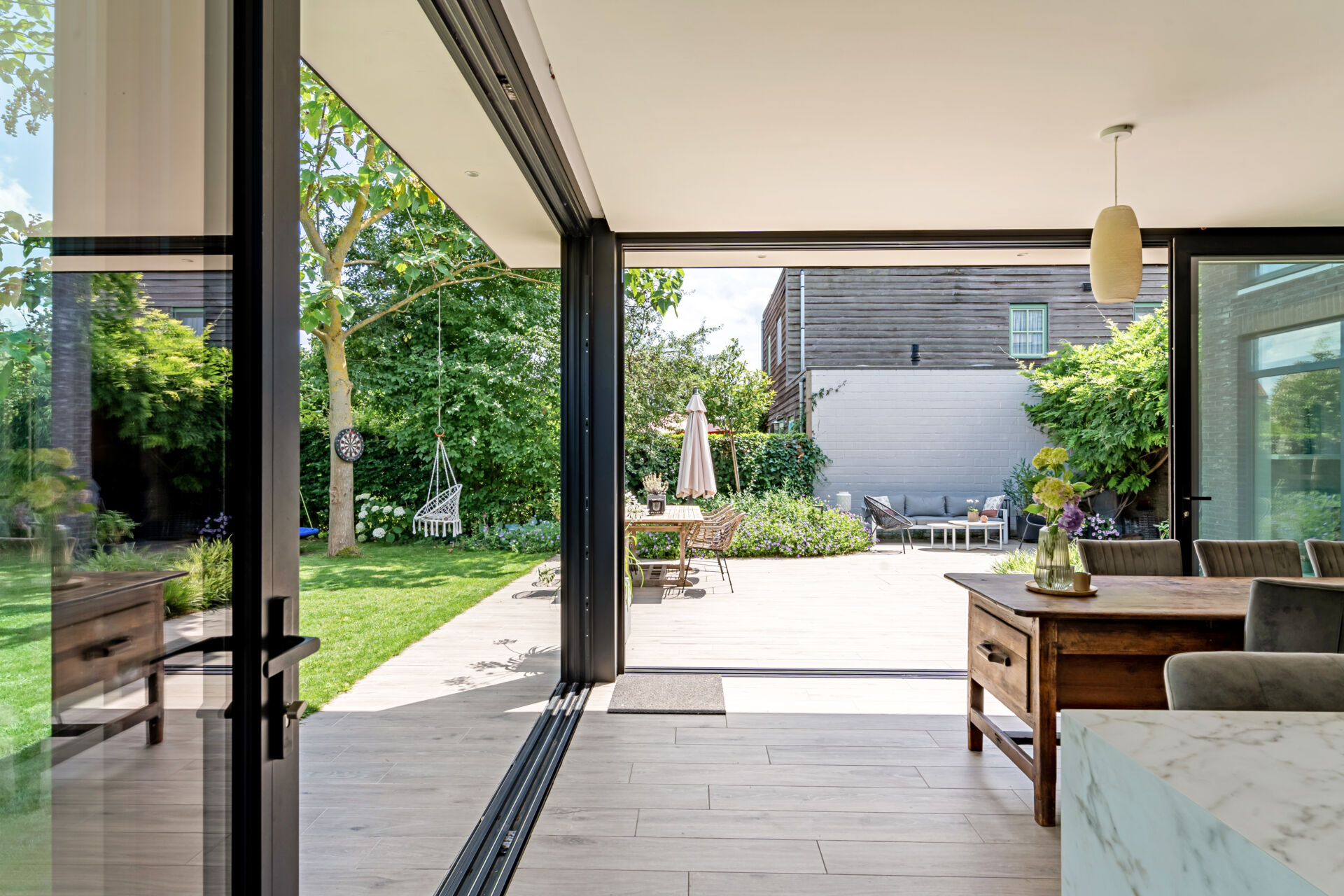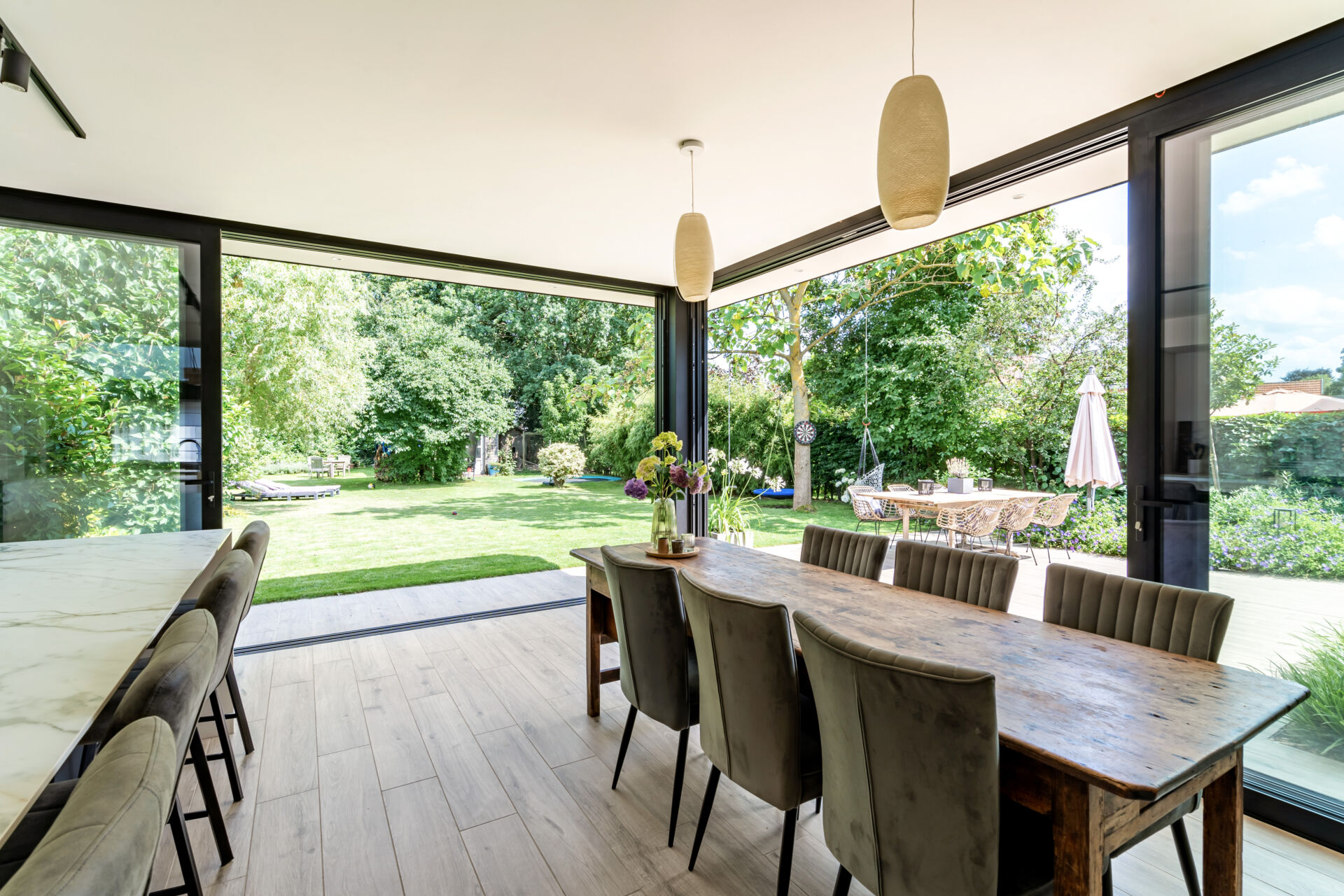 Wat vroeger vooral een eenvoudige veranda was, is uitgegroeid tot een volwaardige leefruimte die het hele jaar door gebruikt kan worden. Het fungeert als een natuurlijke schakel tussen binnen en buiten en vraagt om een eigentijdse aanpak bij woonuitbreidingen, ramen en deuren.